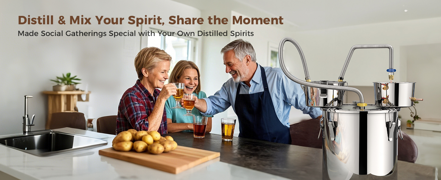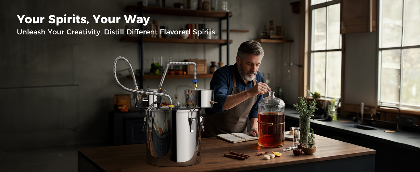- VERSATILE APPLICATIONS: Our alcohol distiller kit, with its multifunctionality and thickened bottom design, is suitable for various heating methods, including gas stoves, wood fires, and induction cookers. Whether you're making distilled water, essential oils, whiskey, wine, or other spirits, it handles them all with ease, offering endless distillation possibilities.