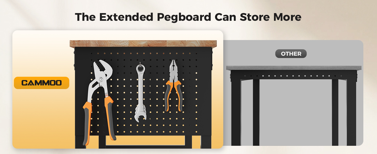 - Use of multiple features and scenarios:Both sides include pegboards, and one side is long enough to hang additional tools for convenience. Includes six hooks to hold additional tools, making your workstation neater and more efficient.