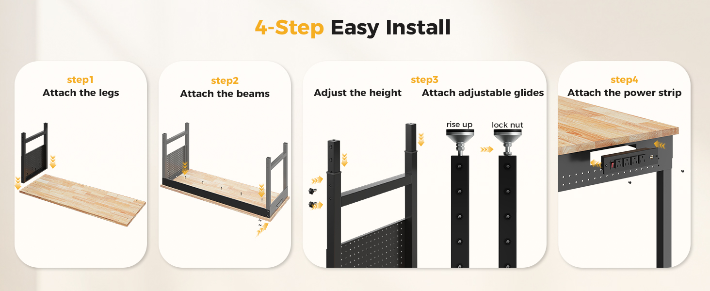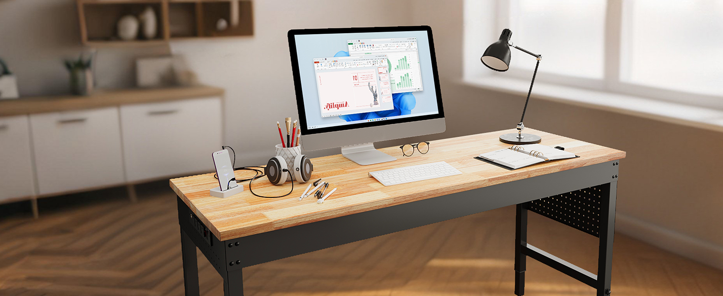 - Stable Structure: Tabletops made of rubber wood have a long lifespan and are environmentally beneficial;Premium carbon steel adjustable glides that can sustain heavy-duty tasks with a maximum load capacity of 2,000 pounds offer stability.