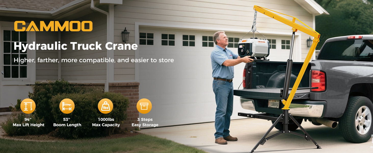 - 1,000 lbs Maximum Load Capacity: Powered by an 8T hydraulic Pump, this truck crane effortlessly handles loads of 500lbs, 750lbs and 1,000 lbs, making it ideal for heavy-duty tasks like household moving or commercial loading.