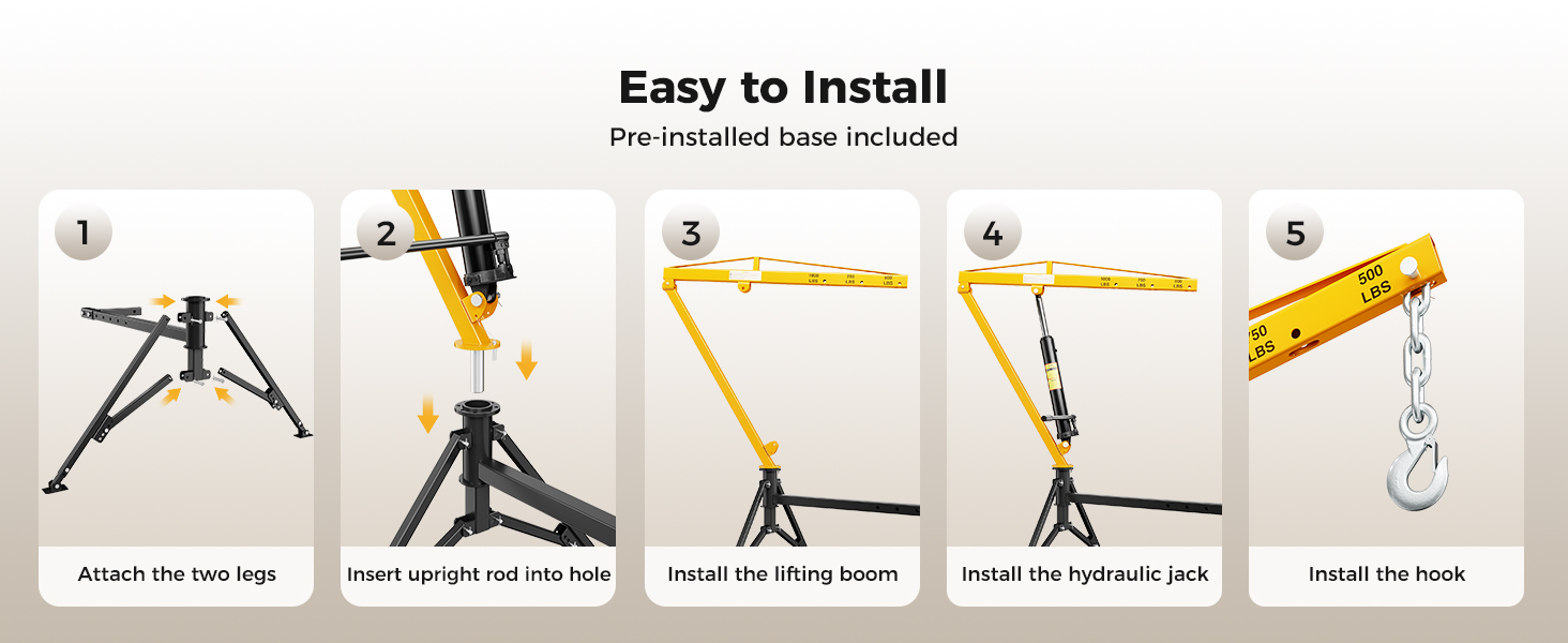 - Easy Storage & Installation: Featuring a pre-installed base and foldable boom, this pick-up crane saves time and space. No complex disassembly required—just fold and store for future use!