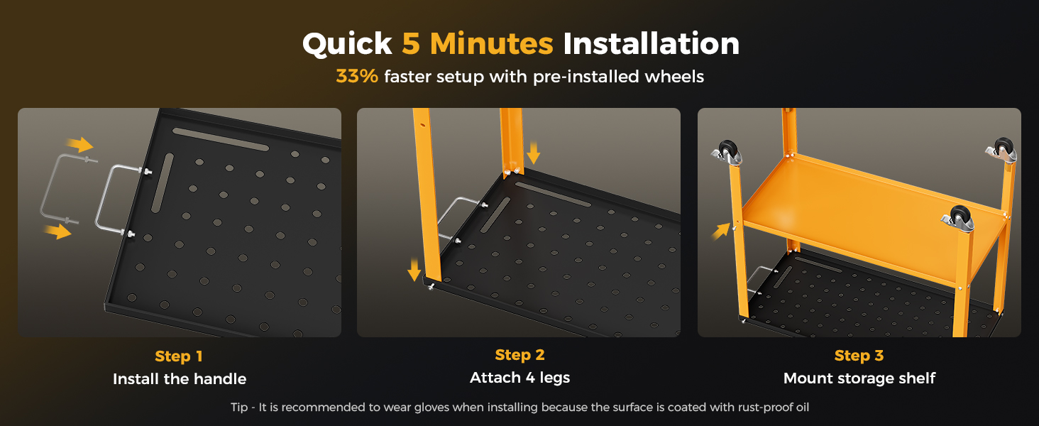 - 5-Minute Hassle-Free Assembly – Get to work fast with pre-assembled wheels and a no-tools-required setup. Perfect for welders, DIYers, and professionals who need a ready-to-use workspace in minutes.